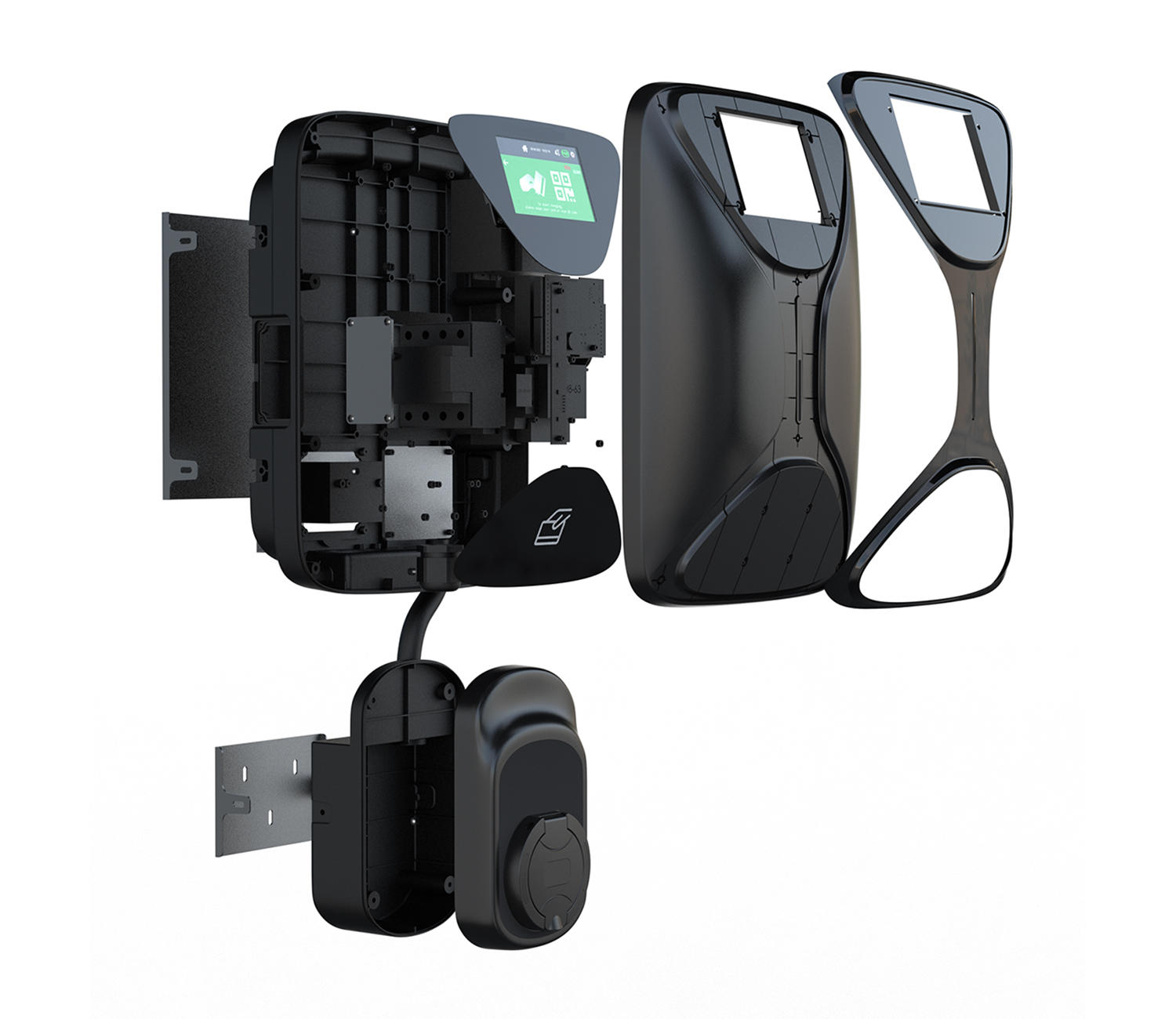 Het aanraakbare HD-display toont alle laadgegevens en de instellingeninterface om het station te beheren.